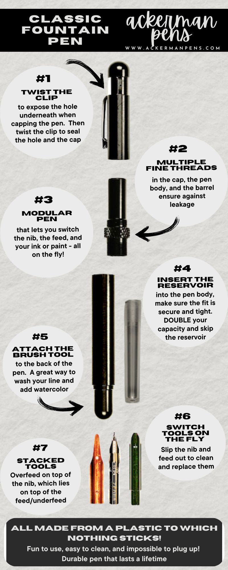 - Use any ink - even India ink and most drawing paints - you cannot plug up this pen